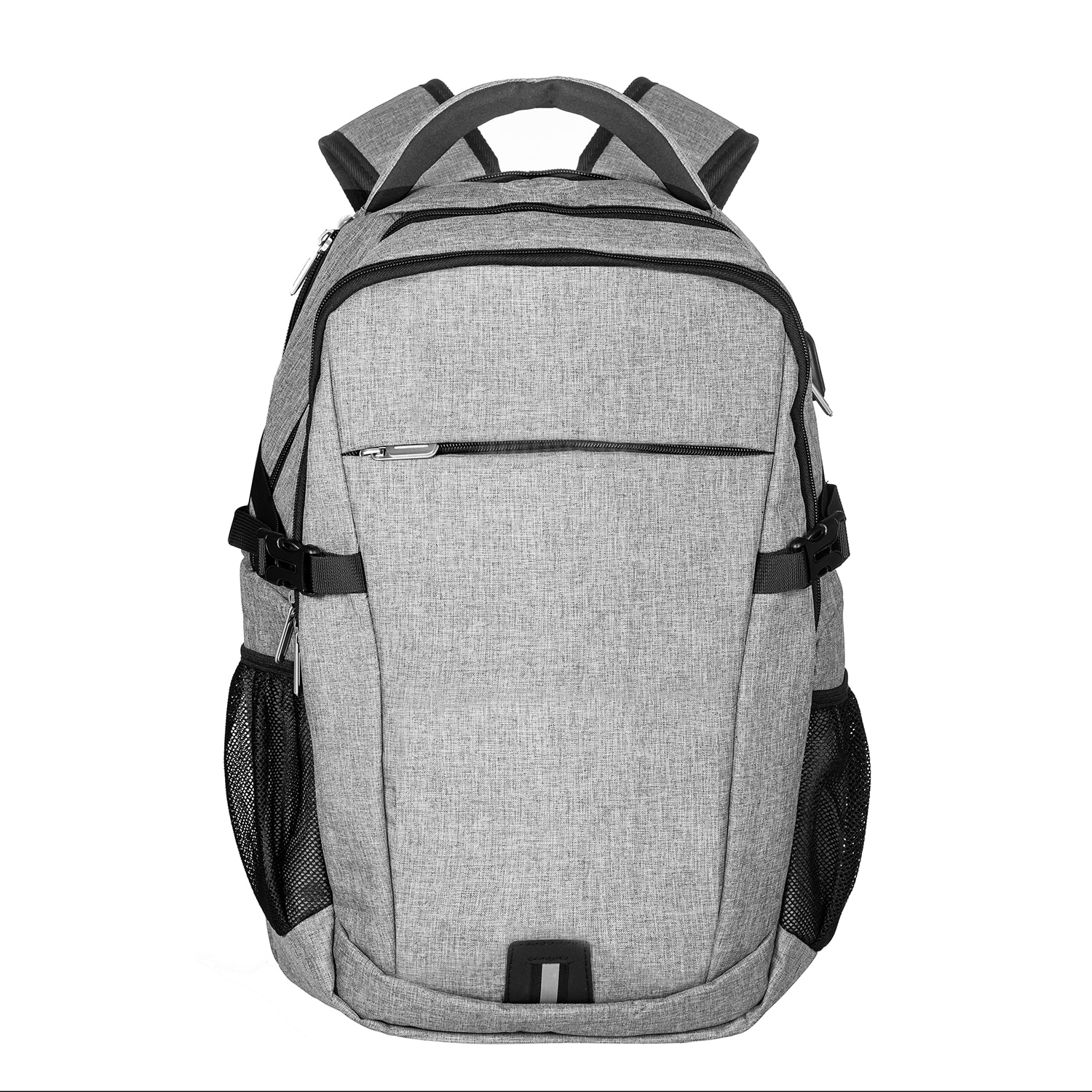 The next generation of our hot-selling Chicago laptop bag now features a built-in USB charge port for on-the-go charging convenience, and a backside anti-theft pocket to keep your valuables secure. The Chicago is a modern styling, large volume backpack consisting of 3 zippered compartments, an iso-padded section that fits up to most 17″ laptops, dual exterior web pockets, interior organizers, as well as a padded and back ventilated cooling design. Complies with Prop 65. 18 1/2″ L x 12″ W x 6″ D