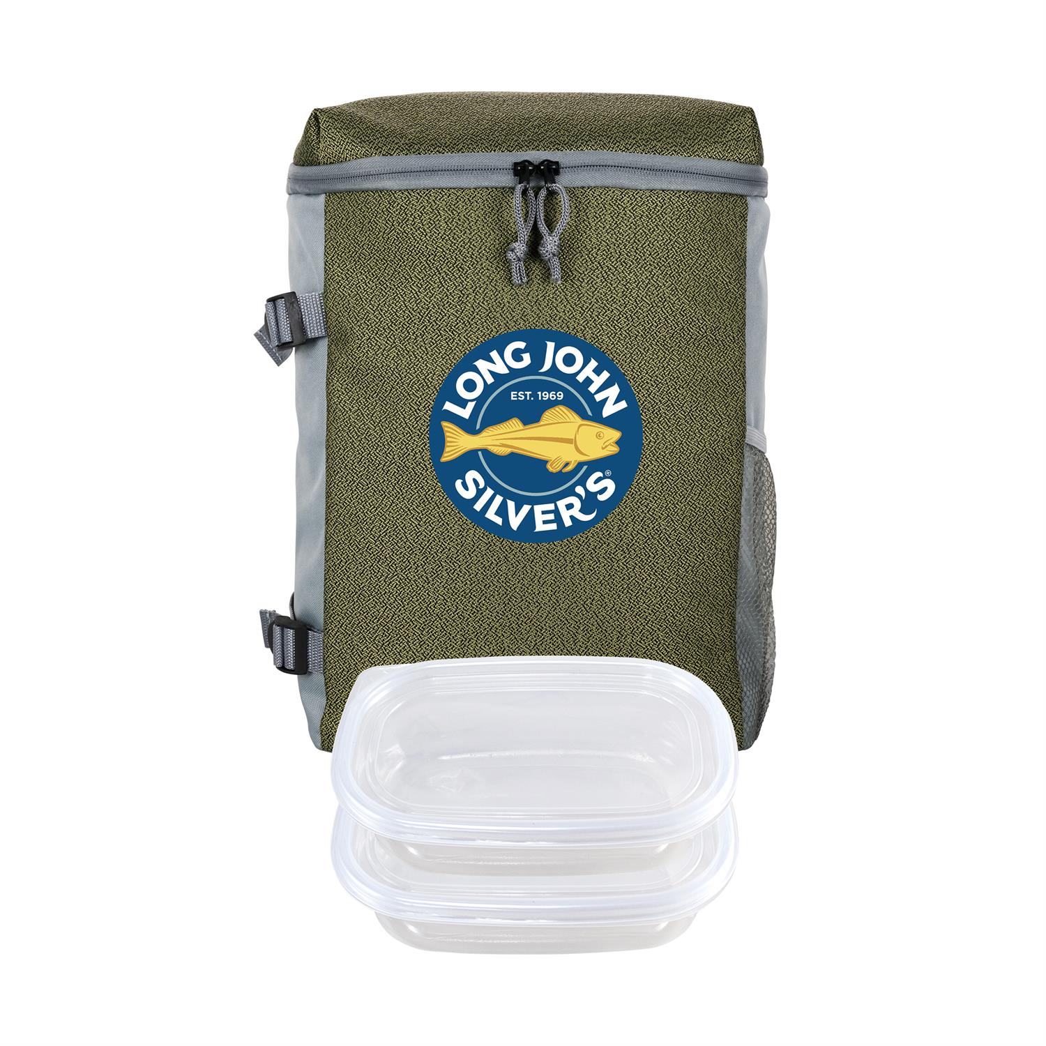 Speck Cooler Backpack with adjustable straps. Two handy food storage containers made in the USA. Complies with FDA, Prop 65. 10″ L x 13″ H x 5.75″ W