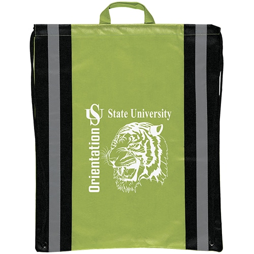The 16W x 20H Magellan Explorer Backpack is made with premium non-woven material and features two 1″ reflective safety stripes, sturdy handles, black draw cords, reinforced corner grommets, and cinch closure. 16″ W x 20″ H