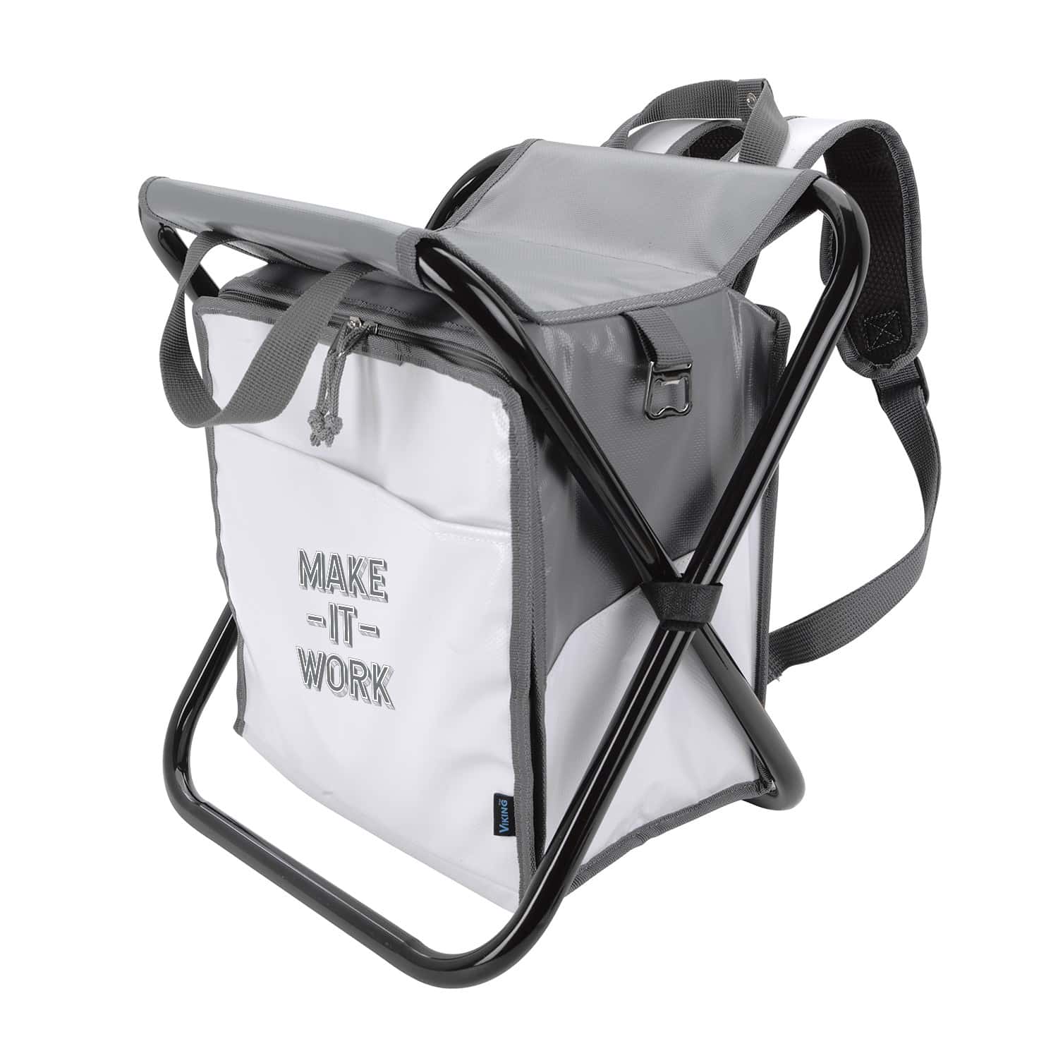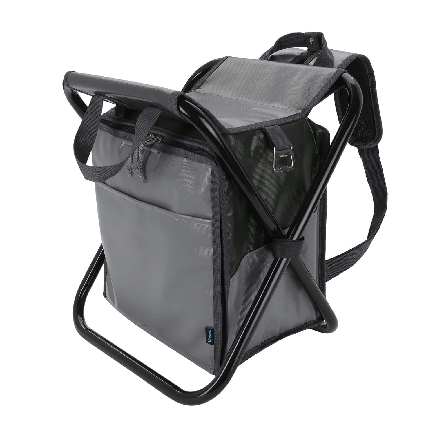 The Viking Collection® Tarpaulin Backpack Chair combines a heat-sealed cooler with a water-repellent fabric and a durable frame for outdoor convenience. 11.4375″ W x 12.1875″ H